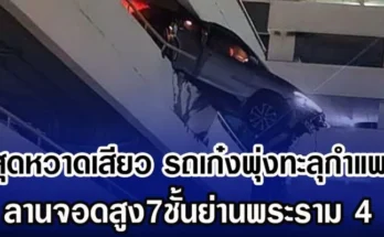 สุดหวาดเสียว รถเก๋งพุ่งทะลุกำแพง ลานจอดสูง7ชั้นย่านพระราม 4 Read More