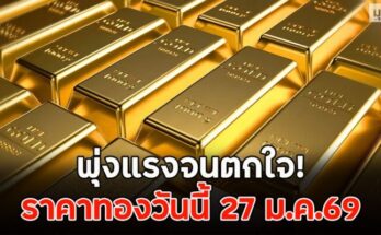 – – – อัปเดตราคาทองล่าสุดวันนี้ 27 มกราคม 2569 หลังเช้านี้ สมาคมค้าทองคำ ประกาศราคาทองครั้งที่ 1 (เปิดตลาด) เมื่อเวลา 09.07 น. ปรับลง 50 บาท บริเวณ 74,750 บาท – – – ตลอดทั้งวันราคาทองปรับขึ้นลง 11 ครั้งแล้ว โดยเวลา …