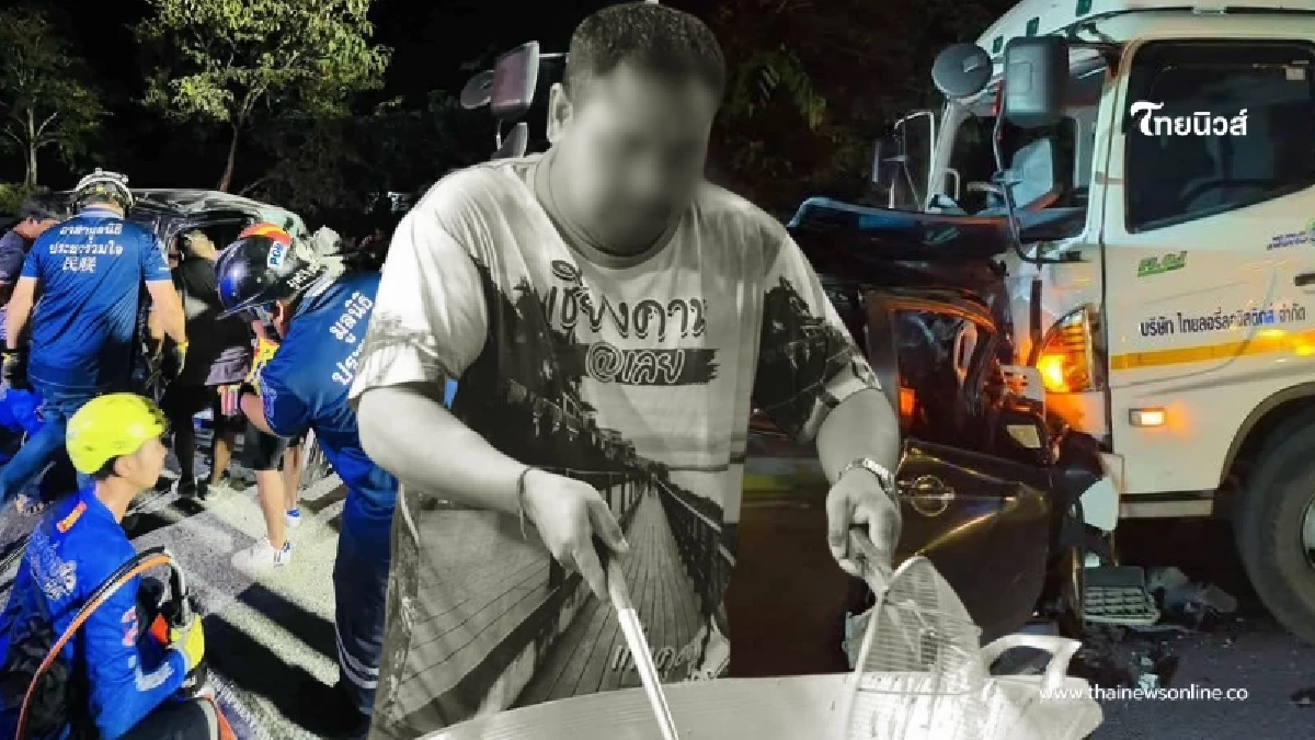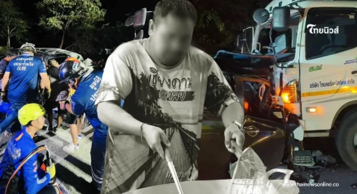 ที่เกิดเหตุพบรถกระบะสภาพพังยับเยิน คนขับคือ นายฐปกรณ์ อายุ 39 ปี อาชีพพ่อค้าไก่ทอด ถูกอัดก๊อปปี้ติดอยู่กับซากรถ เสียชีวิตคาที่ เจ้าหน้าที่กู้ภัยต้องใช้เครื่องตัดถ่างนำร่างออกมาอย่างทุลักทุเล ท่ามกลางบรรยากาศเศร้าสลด
