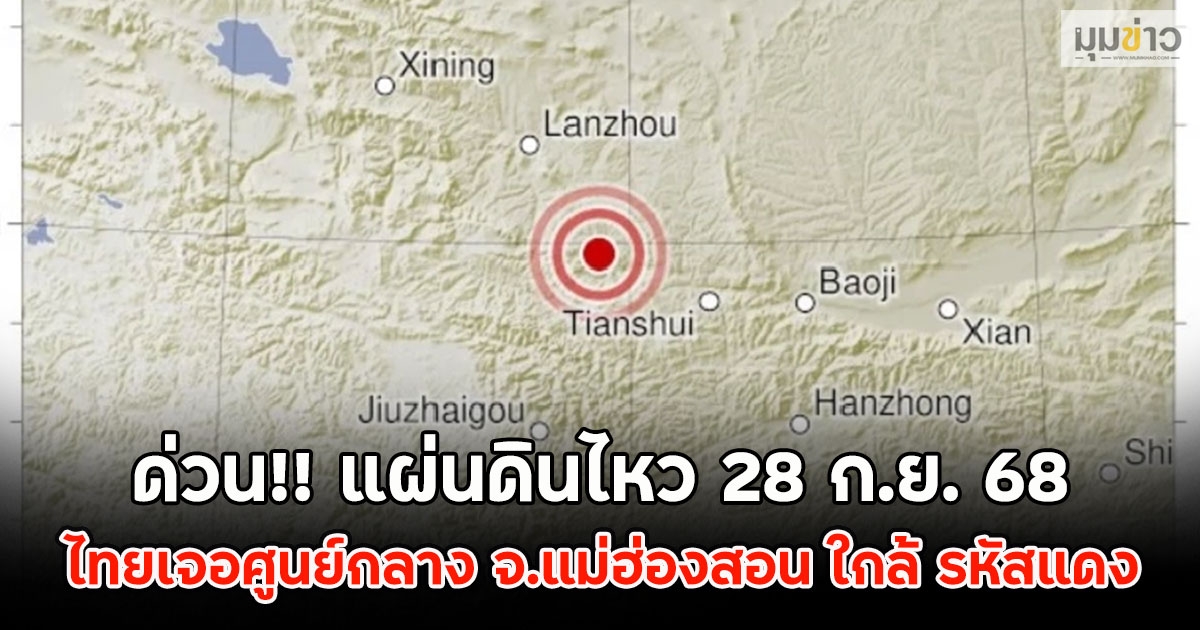 ด่วน!! แผ่นดินไหว 28 ก.ย. 68 ไทยเจอศูนย์กลาง จ.แม่ฮ่องสอน ใกล้ รหัสแดง