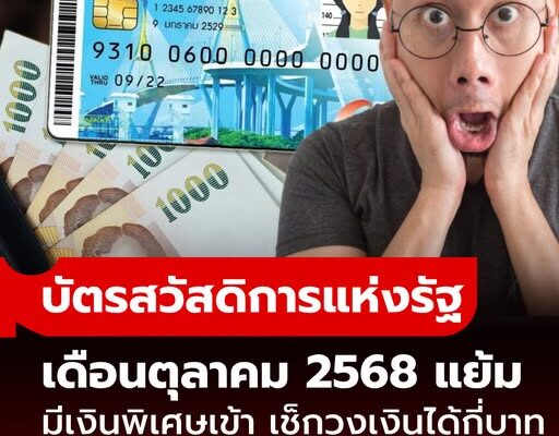 บัตรสวัสดิการแห่งรัฐ บัตรคนจน เดือนตุลาคม 2568 มีเงินพิเศษเข้า เช็กเลยได้เท่าไหร่ รูดใช้อะไรได้บ้าง