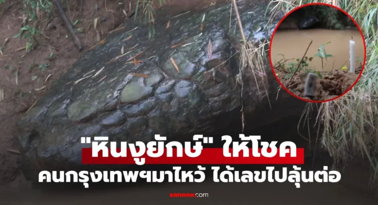 แห่กราบไหว้ขอพร “หินงูยักษ์” เชื่อเป็นร่างของพญานาคราช หนุ่มใหญ่ขับรถจากกรุงเทพฯ มาถวายบายศรี หลังโชคดีในงวดที่ผ่านมา พร้อมจุดธูปขอเลขเด็ดในงวดต่อไป
