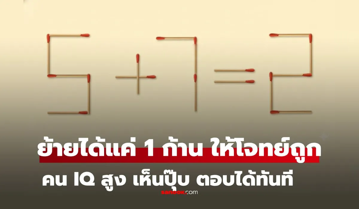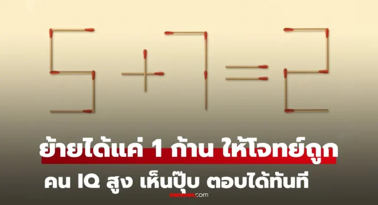 ท้าทาย IQ! ย้ายไม้ขีดแค่ 1 ก้าน แก้สมการ “5+7=2” ให้ถูกต้อง คุณทำได้หรือไม่?