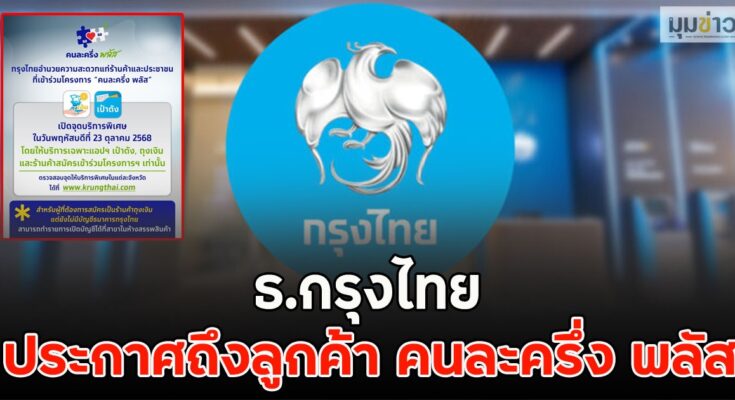 จากกรณี เพจ Krungthai Care ได้ออกมาโพสต์โดยระบุว่า กรุงไทย ประกาศเปิดจุดบริการพิเศษ ในวันพฤหัสบดีที่ 23 ตุลาคม 2568 เพื่ออำนวยความสะดวกแก่ร้านค้าและประชาชนที่เข้าร่วมโครงการ “คนละครึ่ง พลัส” เช็กจุดบริการและเวลาให้บริการได้ที่ : https://krungthai.com/link/supportbranch-fb ทั้งนี้ ให้บริการเฉพาะแอปฯ เป๋าตัง, ถุงเงิน และร้านค้าสมัครเข้าร่วมโครงการฯ เท่านั้น สำหรับผู้ที่ต้องการสมัครเป็นร้านค้าถุงเงิน แต่ยังไม่มีบัญชีธนาคารกรุงไทย สามารถทำรายการเปิดบัญชีได้ที่สาขาในห้างสรรพสินค้า