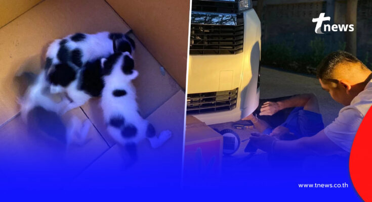 ต่อมาลูกศิษย์จึงได้ช่วยกันนำแม่แมวและลูกแมวทั้ง 4 ตัว ออกจากใต้ท้องรถอย่างปลอดภัย