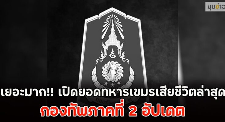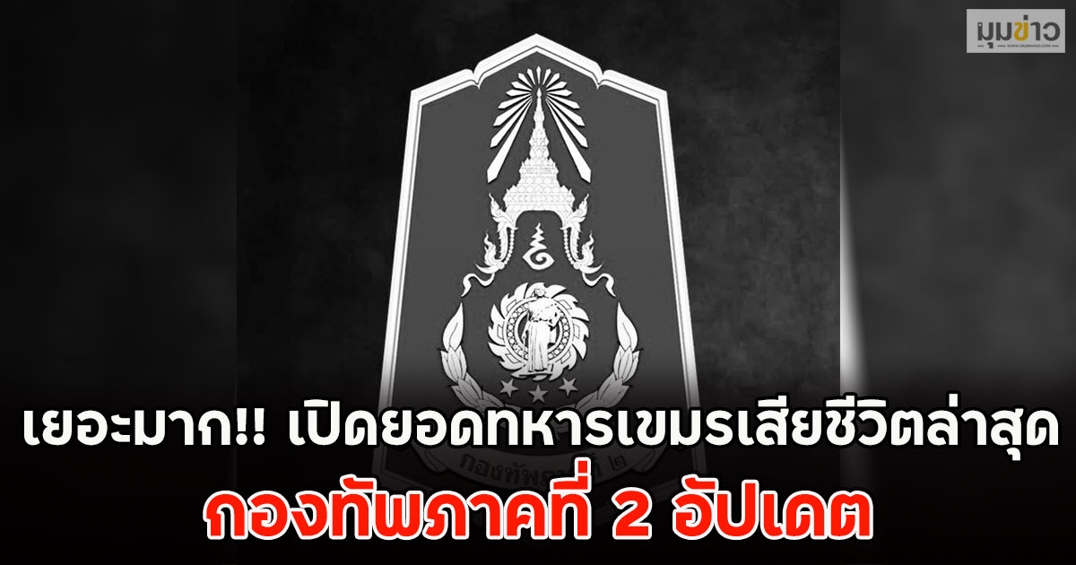 เยอะมาก!! เปิดยอดทหารเขมรเสียชีวิตล่าสุด กองทัพภาคที่ 2 อัปเดต December 12, 2025 - by admin01 จากกรณีเพจ กองทัพภาคที่ 2 ได้ออกมาโพสต์โดยระบุว่า 11 ธ.ค. 2568 สรุปสถานการณ์ชายแดน พื้นที่ 4 จังหวัดชายแดน 13 แนวรบ จ.อุบลราชรานี (2) จ.ศรีสะเกษ (5) จ.สุรินทร์ (5) จ.บุรีรัมย์ (1) ทุกพื้นที่ยังมีการตอบโต้จากฝั่งกัมพูชา สถานการณ์อยู่ในการควบคุมของเราแบบเฝ้าระวัง ทหารกัมพูชาเสียชีวิต 125 นาย