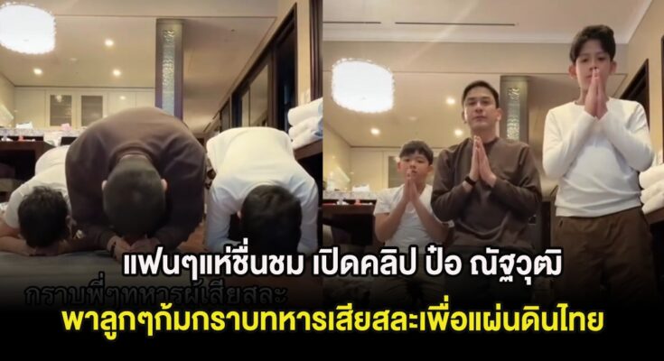 แฟนๆแห่ชื่นชม เปิดคลิป ป๋อ ณัฐวุฒิ พาลูกๆก้มกราบทหารเสียสละเพื่อแผ่นดินไทย December 19, 2025 - by admin01 จากสถานการณ์ชายแดนไทยกัมพูชายังคงตึงเครียดเข้าสู่การปะทะวันที่ 12 แล้ว โดยล่าสุดพระเอกรุ่นใหญ่อย่าง ป๋อ ณัฐวุฒิ ได้โพสต์คลิป ขณะตนเอง และลูกๆ ได้ก้มกราบ พร้อมเขียนข้อความบนคลิปว่า กราบพี่ๆ ทหารผู้เสียสละทุกท่านครับ ลูกหลานได้มีแผ่นดินอยู่ กับความเสียสละของพี่น้องทหารผู้กล้าทุกท่าน กราบหัวใจพี่ๆทหารทุกนายที่กำลังปฏิบัติหน้าที่อยู่ในขณะนี้นะครับ