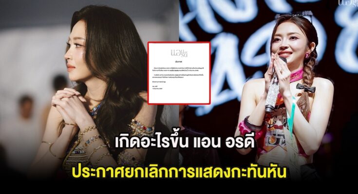 เกิดอะไรขึ้น แอน อรดี ประกาศยกเลิกการแสดงกะทันหัน