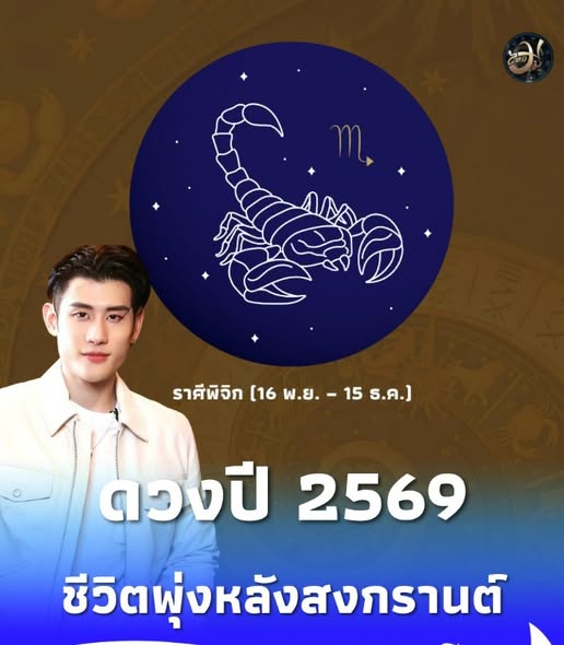 ราศีพิจิก ดวงปี 2569 ชีวิตพุ่งหลังสงกรานต์ พลิกขึ้นเป็นเบอร์หนึ่งในสายงานราศีพิจิก ดวงปี 2569 ในปี 2569 นี้ “นาทีทอง” ของคุณกำลังจะเริ่มต้นขึ้น โดยเฉพาะจังหวะชีวิตหลังช่วงสงกรานต์เป็นต้นไปที่ดวงชะตาจะมีการเปลี่ยนทิศทางครั้งใหญ่เสมือนได้เกิดใหม่