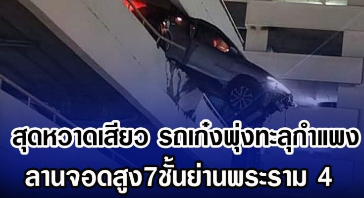 สุดหวาดเสียว รถเก๋งพุ่งทะลุกำแพง ลานจอดสูง7ชั้นย่านพระราม 4