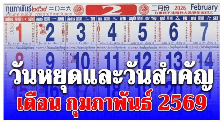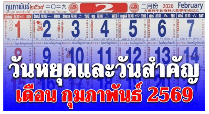 วันหยุดและวันสำคัญ เดือน กุมภาพันธ์ 2569