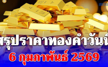 ราคาทองวันนี้ 6 กุมภาพันธ์ 2569 โดย สมาคมค้าทองคำ ประกาศราคาทองครั้งที่ 1 (เปิดตลาด) เมื่อเวลา 09.05 น. ปรับลงพรวดเดียว 1,300 บาท สู่บริเวณ 72,000 บาท