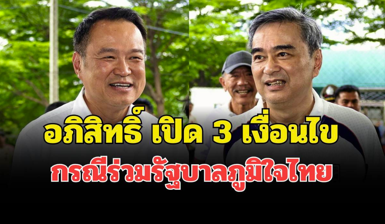 เมื่อถูกถามว่า หากไม่มี พรรคกล้าธรรม ร่วมรัฐบาล พรรคประชาธิปัตย์จะสามารถพิจารณาเข้าร่วมได้หรือไม่ นายอภิสิทธิ์ระบุว่า ยังต้องหารือในรายละเอียดเงื่อนไขอื่น ๆ โดยเฉพาะประเด็นเงินเทาและการครอบงำทางการเมือง