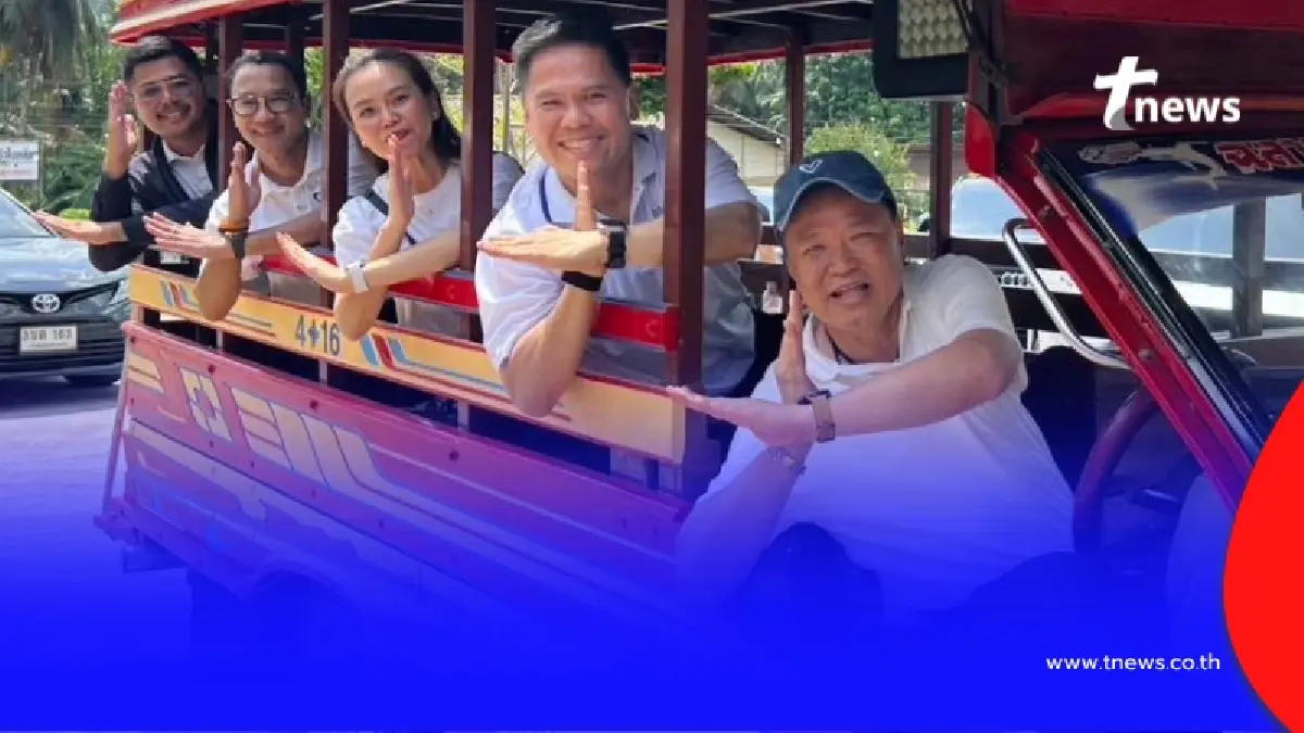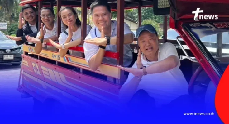 ภาพดังกล่าวประกอบด้วย วราวุธ ศิลปอาชา , ไตรศุลี ไตรสรณกุล และ คงกฤษ ฉัตรมาลีรัตน์ ว่าที่ สส.จังหวัดระนอง พรรคภูมิใจไทย โดยมีนายอนุทินเป็นผู้ขับรถสองแถวด้วยตนเอง