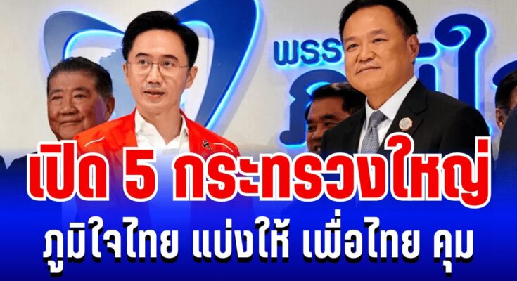 ในส่วนของพรรคเพื่อไทย มีรายงานว่า ได้รับการจัดสรร 5 กระทรวง ได้แก่