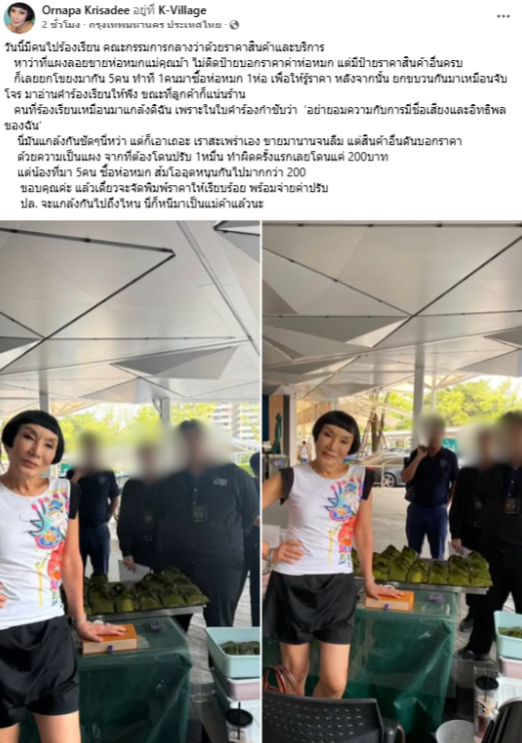 อย่างไรก็ตาม ม้า อรนภา ยอมรับว่าเป็นความสะเพร่าของตนเองที่ลืมติดป้ายราคาห่อหมก เนื่องจากขายมานาน ขณะที่สินค้ารายการอื่นมีการแสดงราคาชัดเจน