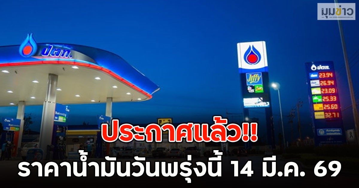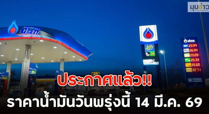ราคาน้ำมันปั๊ม พีที วันที่ 14 มี.ค. 2569