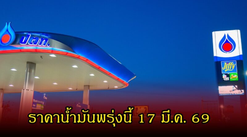ราคาน้ำมันพรุ่งนี้2569 (17 มี.ค. 69) บางจาก ปตท. อัปเดตราคาล่าสุด ราคาน้ำมันพรุ่งนี้ยังไม่มีการเปลี่ยนแปลง หลังบริษัท ปตท.น้ำมันและการค้าปลีก จำกัด (มหาชน) หรือโออาร์ (OR) และบริษัท บางจาก คอร์ปอเรชั่น จำกัด (มหาชน) หรือ BCP ประกาศปรับราคาน้ำมันเบนซิน แก๊สโซฮอล์ 95-91 ขึ้น 50 สตางค์ต่อลิตร ขณะที่แก๊สโซฮอล์ E85-E20 ลดราคา 50 สตางค์ ด้านราคาน้ำมันดีเซลไม่มีการเปลี่ยนแปลง ส่งผลให้ราคาน้ำมันขายปลีกในพื้นที่กรุงเทพฯ ที่ยังไม่รวมภาษีบำรุงท้องถิ่นพรุ่งนี้ เป็นดังนี้
