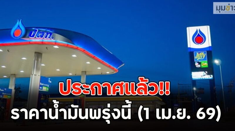 ราคาน้ำมันพรุ่งนี้ (1 เม.ย. 69) บางจาก ปตท. อัปเดตราคาล่าสุด อัปเดตราคาล่าสุด