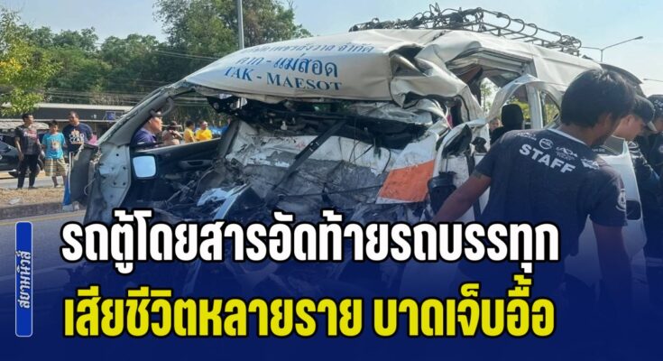 ด่วน! รถตู้โดยสารอัดท้ายรถบรรทุก เสียชีวิตหลายราย บาดเจ็บอื้อ