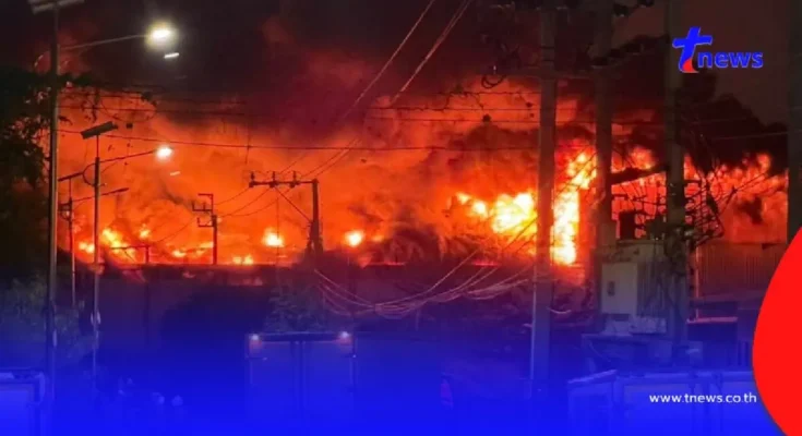 ด่วน! ไฟไหม้”โรงงานโฟม” จ.สมุทรปราการ บางนา-ตราด กม.13