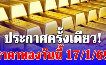 ราคาทองวันนี้ 17 มกราคม 2569 ประกาศครั้งเดียว Read More