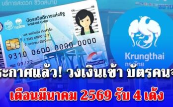 ประกาศแล้ว! วงเงินเข้า บัตรคนจน เดือนมีนาคม 2569 รับ 4 เด้ง รอบใหม่เตรียมทบทวนสิทธิลงทะเบียน Read More